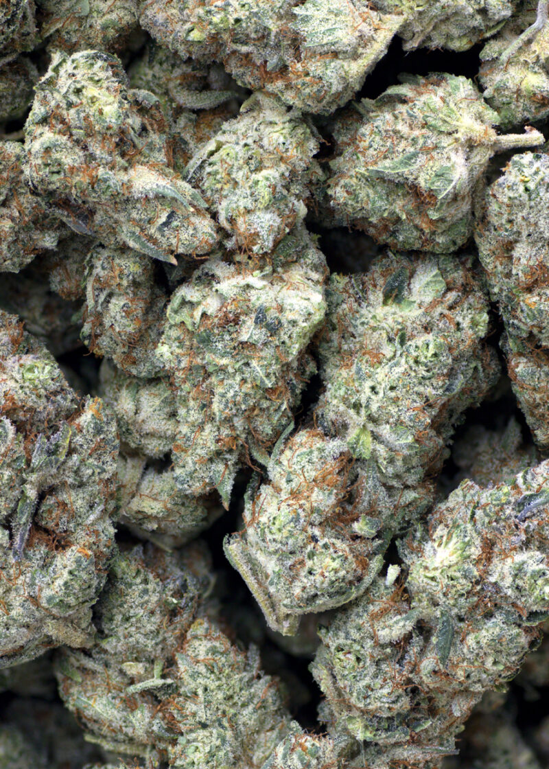 Agent O, also known as “Agent Orange,” is a sativa dominant hybrid (75% sativa/25% indica) strain created through crossing the infamous Jack’s Cleaner X Space Queen strains. This bud brings on the flavor with an eye-opening sweet citrus taste that leaves your mouth and eyes watering with its rich chemical exhale. The smell takes a pungent turn, with sweet cheese accented by sharp chemicals and citrus. This aroma intensifies as each bright neon green golden trichome-coated spade-shaped nug is broken apart and burned. The Agent O high is just as bright as the flavor, bringing on energetic and uplifted effects that are perfect for giving you an extra boost of energy when you’re feeling tired or down. It hits you with a rush of creative energy at the onset, leaving you feeling slightly hazy and giggly with a sense of deep-felt euphoria. As this effect grows, so will your happiness, leaving you blissful and hazy with no real sense of what’s happening around you. Thanks to these effects and its high 25% average THC level, Agent O is said to be perfect for treating conditions such as ADD or ADHD, bipolarity, chronic pain, headaches or migraines, and chronic fatigue.