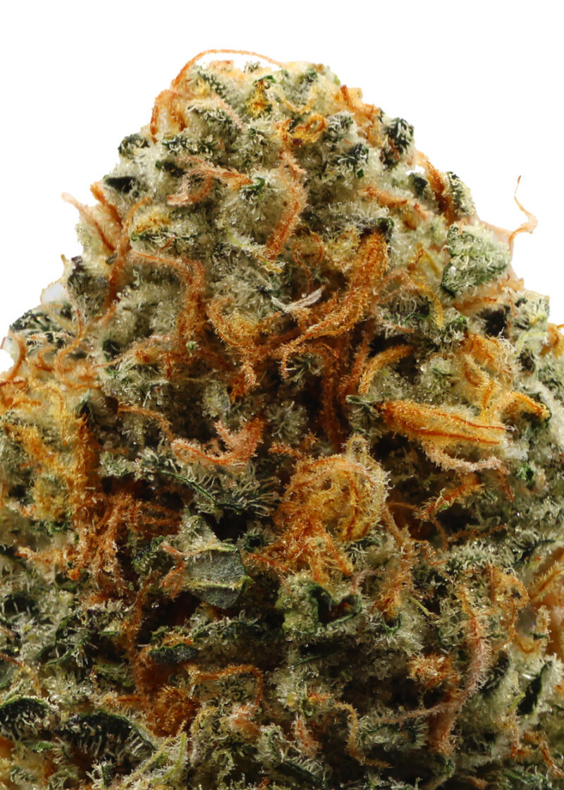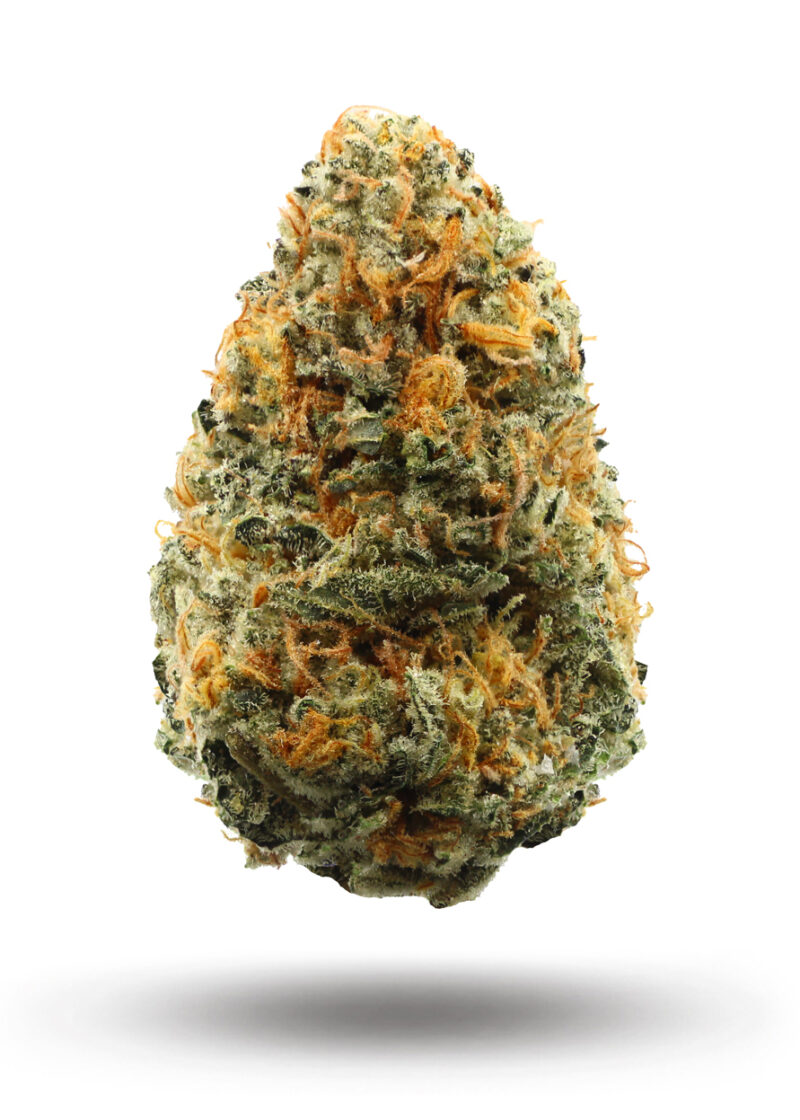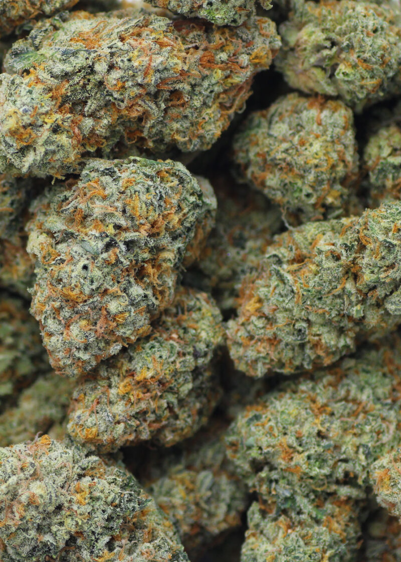 Baby Yoda is an indica dominant hybrid strain (70% indica/30% sativa) created through crossing the iconic Khalifa Kush X The Menthol strains. Named for the beloved character from The Mandalorian series, Baby Yoda packs a serene and calming high that will make you feel like you’re becoming one with the Force. The high will settle in slowly, beginning with a tingly sense in the back of the head and neck that is pleasantly calming yet arousing. You’ll feel happy and lifted as the tingle gently wipes away any bad moods or racing thoughts, replacing them with tranquil, blissful nothingness. A boost in sociability accompanies this heady effect, leaving you feeling outgoing and chatty, although you’re not going to be able to focus on much of anything other than laughter at this point. This tingle will soon turn sedative, leaving you sleepy and dozing off before you realize what’s happening. With these effects and its high 23-25% average THC level, Baby Yoda is often chosen to treat a variety of conditions including chronic stress or anxiety, depression, headaches or migraines and insomnia. This bud has a spicy diesel flavor with an earthy and woody pine aroma to go with it. Baby Yoda buds have dense, spade-shaped bright neon green nugs with lots of thin light orange hairs and chunky, golden-amber crystal trichomes.