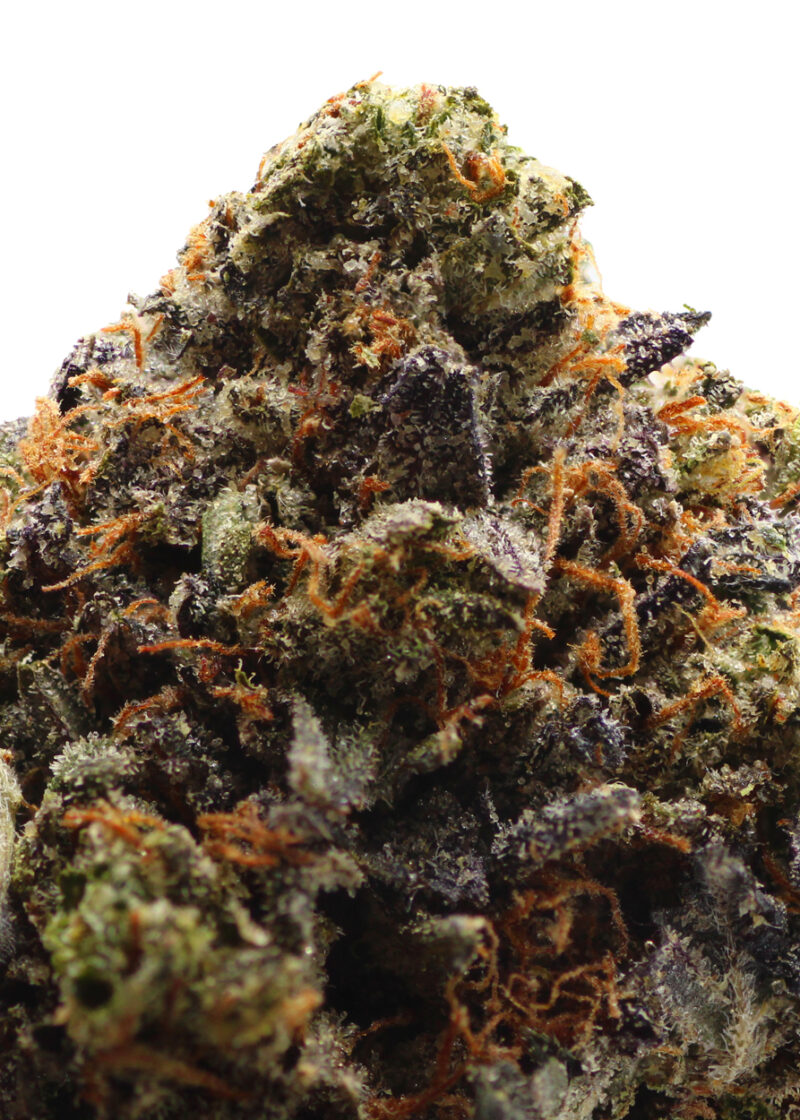 Oz and the quality of the smoke and buds are perfect. Not fluffy and has a solid squeeze. A bit dense with dark purple with crystal trichomes that stand out.