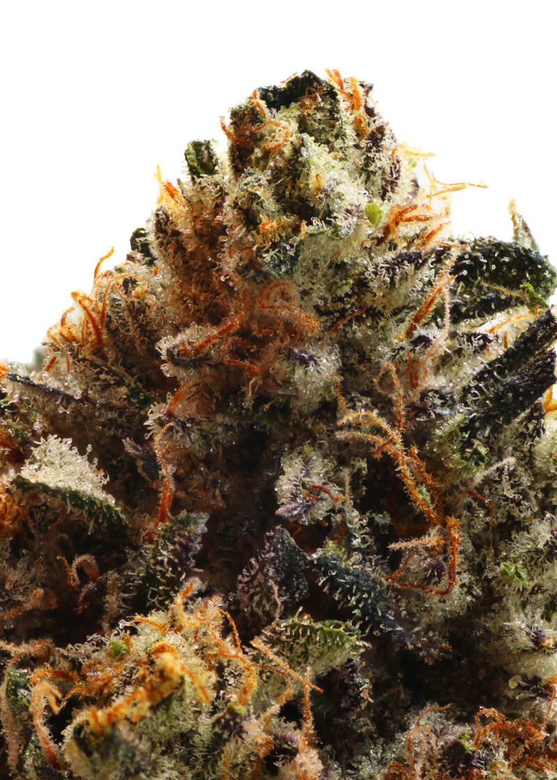 Bluefin Tuna Kush, also known as “Bluefin Tuna,” is a slightly indica dominant hybrid strain (60% indica/40% sativa) created through crossing the classic Tuna Kush X Blueberry strains. If you’re looking for a bud with a super interesting flavor and well-balanced high, you’ve found it with Bluefin Tuna Kush. This bud has a sweet blueberry taste that’s accented by hints of pungent diesel and a punch of rotting fish that leaves you gagging. The aroma is very similar, although with a heavily spicy and diesel overtone to it, too. The Bluefin Tuna Kush high is just as unique as the taste, with energizing yet dreamy effects that will have your mind soaring high while your body fades away into oblivion. You’ll feel an influx of creative energy slowly start to seep into your mind, leaving your mental state fading in and out of dreamy introspection and sharp focus. A heavy body high comes next, locking you to the couch and leaving you completely immovable. Combined with its high 20% average THC level, these effects make Bluefin Tuna Kush perfect for treating chronic pain, insomnia, chronic stress or anxiety and muscle spasms or cramps. This bud has fluffy pepper-shaped dusty green nugs with light amber undertones, orange hairs and a coating of frosty sandy amber crystal trichomes.