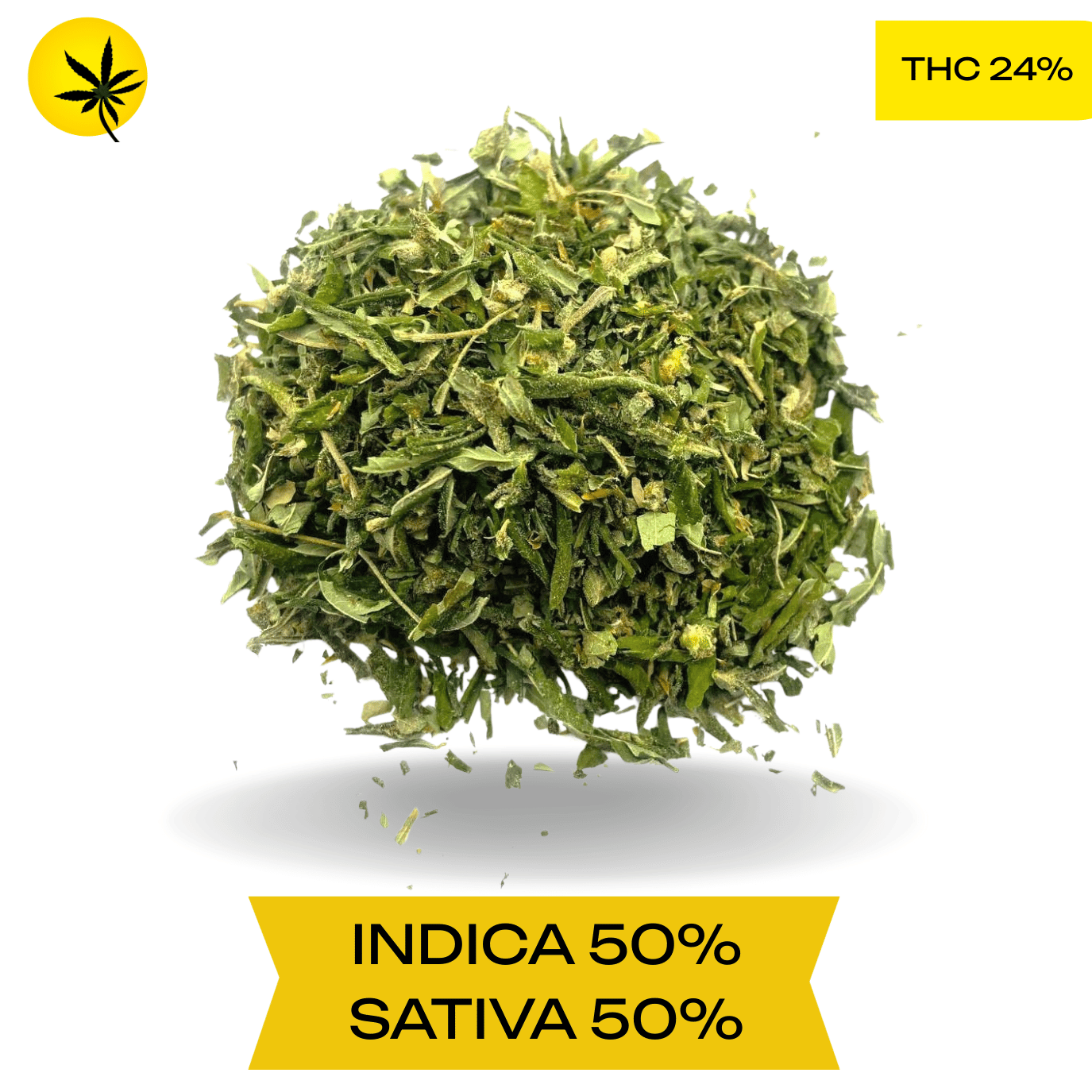 Small pieces of marijuana flower that were once part of larger buds. Shake usually falls off buds when handling them or when they get jostled around in packaging. It can be used by producers to make pre-rolled joints.
