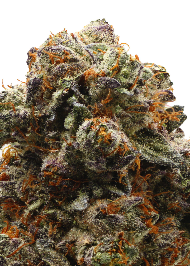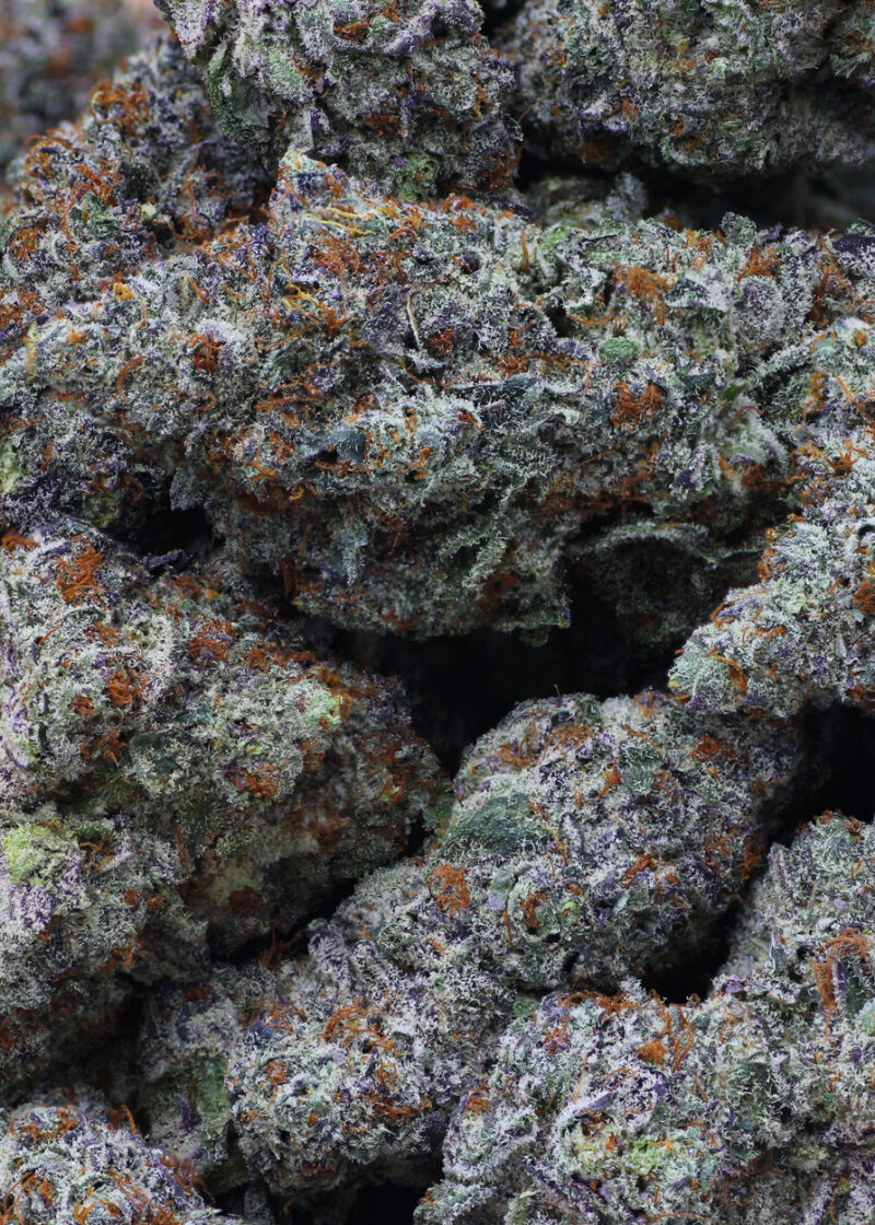 Designer Runtz is an indica dominant hybrid strain (80% indica/20% sativa) created through crossing the iconic Luxuriotti X Runtz strains. Named for its amazing flavor and celebrity parentage, Designer Runtz is the perfect choice for any discerning indica lover. Like its namesake candy, Designer Runtz has a sweet and sour fruity candy flavor with hints of lemony citrus and a touch of creamy strawberries. The aroma is just as delightful, with a sour lemon candy overtone accented by creamy strawberries, nutty earthiness and tangy fruits. The Designer Runtz isn’t nearly as vibrant as the flavor, with effects that serve to help you get to sleep rather than up and moving. It starts with an immediate euphoric rush that has you flying high with happy energy and motivation. A tingly body high comes next, sneaking into your entire physical form and have you feeling totally relaxed from head to toe. With these effects and its super high 20-30% average THC level, Designer Runtz is often chosen to treat a variety of conditions such as chronic fatigue, headaches or migraines, chronic pain and chronic stress or anxiety. This bud has dense diamond-shaped emerald-green nugs with deep purple undertones, thin red-orange hairs and tiny, purple-tinted white crystal trichomes.