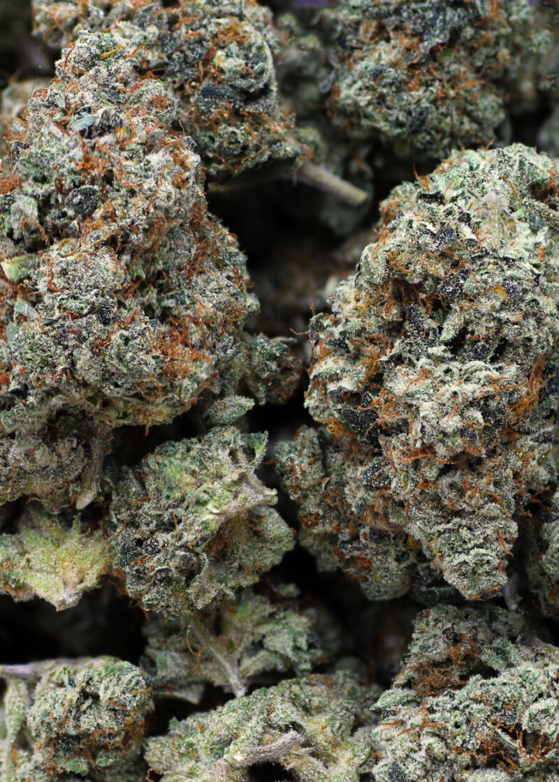 A perennial favorite, Green Crack is a sativa-dominant hybrid that was bred by inbreeding Skunk #1. Green Crack is usually sativa-dominant, but there’s also a less popular indica-heavy version of the strain. Green Crack got its name from Snoop Dogg, though it’s also known as Green Cush or simply Cush among smokers who prefer not to reference cocaine. This highly addictive strain is massively potent, with top THC levels reaching 24%. It has a sativa/indica ratio of 65:35. The high is decidedly cerebral, with a big mood boost and a jolt of energy. This strain spurs creativity and helps patients get things done. It’s most effective in treating anxiety and depression, along with ADHD, PTSD, and migraines. Green Crack has a sweet flavor with tropical and citrus notes. The buds are dense and tight. Dry mouth occurs frequently, while dry eyes, dizziness, and paranoia, happen less often. It’s most common in the Pacific Northwester, California, Arizona, and Colorado. But it can be found almost anywhere else with relative ease. It’s one of the most popular strains on the black market for this reason.