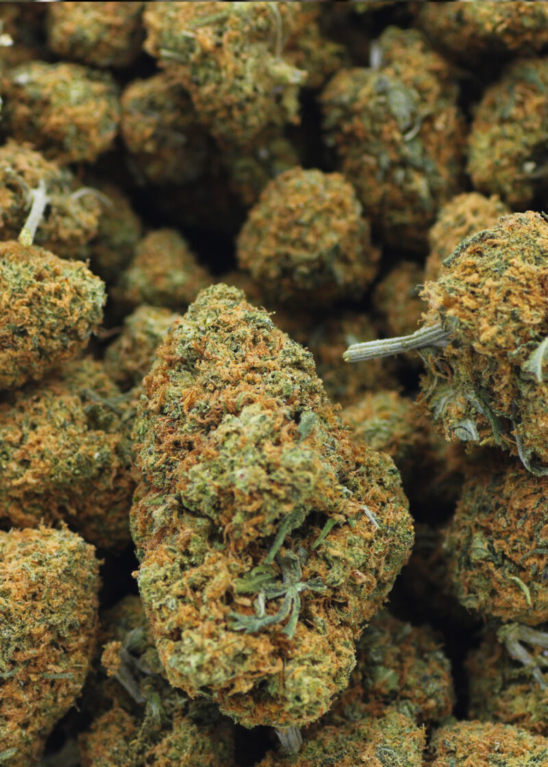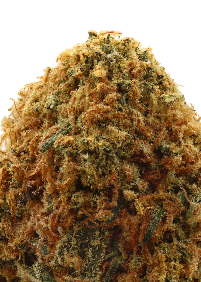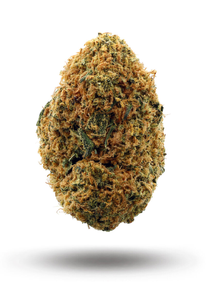 London Poundcake is an indica dominant hybrid strain created through crossing the delicious Sunset Sherbet with another indica-heavy hybrid strain. Named for its insanely delicious flavor, London Poundcake packs a sweet berry and grape flavor accented by nutty lemon and citrus. The aroma is earthy and woody, with hints of nutty lemon and fruity berries throughout. The London Poundcake high is just as delightful as the flavor, with calming and centered effects that are both relaxing and lifting in nature. You’ll feel a light lift at the onset of the high that fills you with a calming sense of centered focus, gently easing away negative or racing thoughts immediately. As your mind settles, a relaxing body high will sneak up on you, lulling you into a slightly couch-locked state that doesn’t cause too much sedation or sleepiness at all. Thanks to these effects and its insanely high 26-29% average THC level, London Poundcake is said to be perfect for the experienced patient suffering from conditions such as mood swings, chronic stress, depression, ADD or ADHD and chronic fatigue. This bud has dense spade-shaped olive green nugs with lots of thin orange hairs and a coating of tiny frosty amber crystal trichomes.
