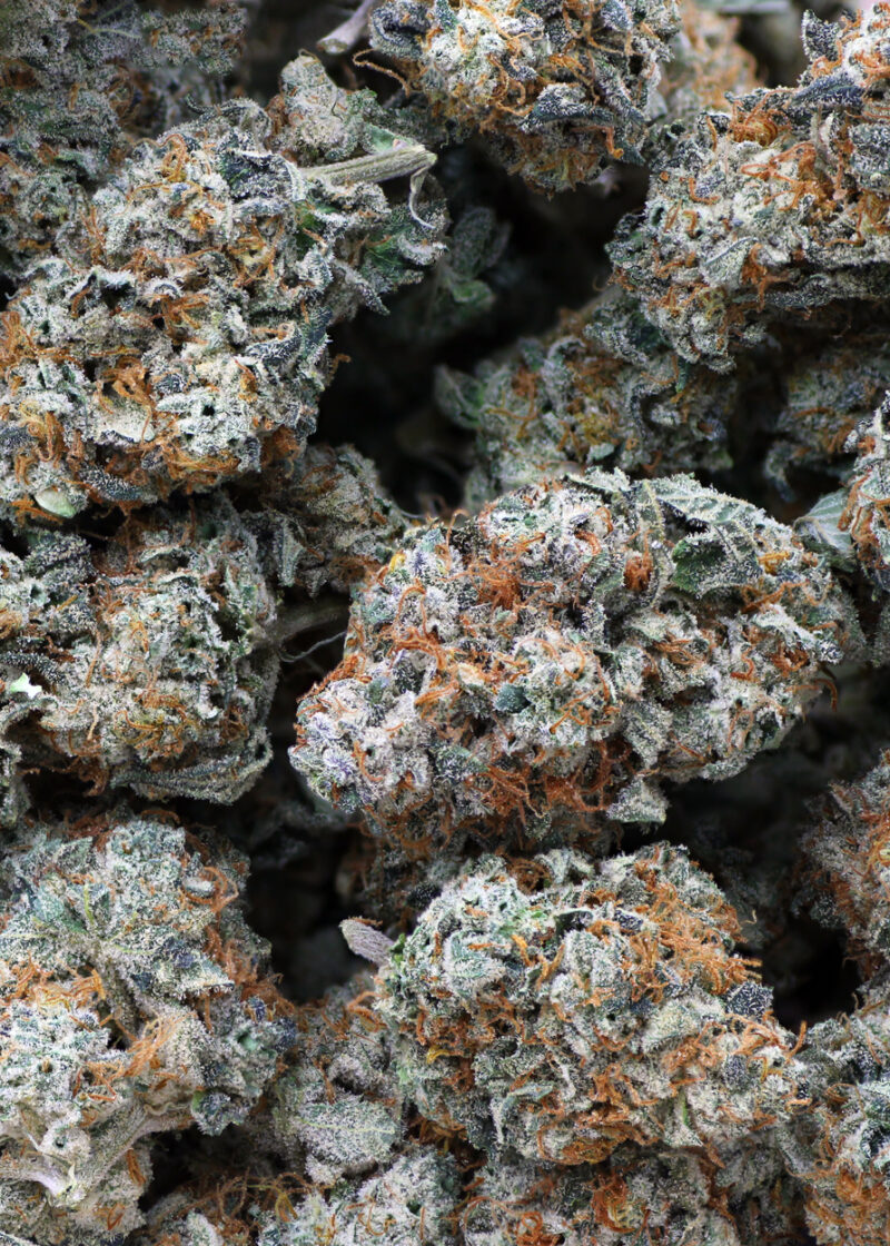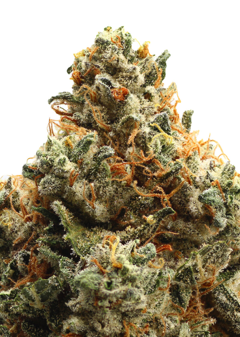 Mandarin OG, also known as “Mandarin Kush,” is a slightly indica dominant hybrid (60% indica/40% sativa) strain created through crossing the classic Tangerine Haze X OG Kush strains. If you’re looking for a mouthwatering and eye-opening orange flavor, you’ve found it! Mandarin OG brings on the citrus with a juicy orangey flavor accented by a smooth and spicy exhale. The smell is just as addictive, with fresh orange and herbs accented by spicy earth. The Mandarin OG high will open your eyes and lift your spirits after just a few tokes, launching you into a mentally and physically active state that’s suited for the daytime. You’ll feel a lifted onset that rushes into your mind and infuses you with a sense of tingly energy and motivation. As this high expands throughout the rest of your body, you’ll find yourself feeling more outgoing and sociable, easily engaging in conversation with those around you. Thanks to these lifted effects and its high 20-21% THC level and 4-5% CBD level, Mandarin OG is the perfect medicinal choice for treating chronic fatigue, depression, migraines or headaches, and inflammation. This bud has round small minty green nugs with lots of long thin orange hairs and a coating of tiny frosty white crystal trichomes.