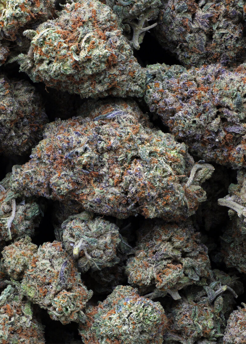 Midnight Cookie, also known as “Midnight Cookies,” is an indica dominant hybrid strain (70% indica/30% sativa) created as a phenotype of the classic Cookies ‘N Cream strain. Named for its sleepy high and delicious flavor, Midnight Cookie is the perfect late-night treat to help you finally settle down and get to sleep. The Midnight Cookie high will settle in with an immediate rush of effects, lifting your mind into a happy, heady place that is filled with a deep sense of calming, hazy happiness. As your mind lifts higher and higher, a soothing body high will begin to slowly sink in, relaxing you from head to toe and leaving you ready to kick back and enjoy yourself. This combination will absolutely turn sedative, so prepare for a nice long nap with this bud! Given these effects and its insanely high 31-37% average THC level, Midnight Cookie is often suggested to treat experienced patients with conditions such as chronic stress or anxiety, depression, chronic pain and insomnia. This bud has a sweet and creamy nutty cookie flavor with a zesty and lemony aroma to go along with it. Midnight Cookie buds have fluffy and small, rounded olive green nugs with thin orange hairs and a frosty coating of chunky, vibrantly white crystal trichomes.