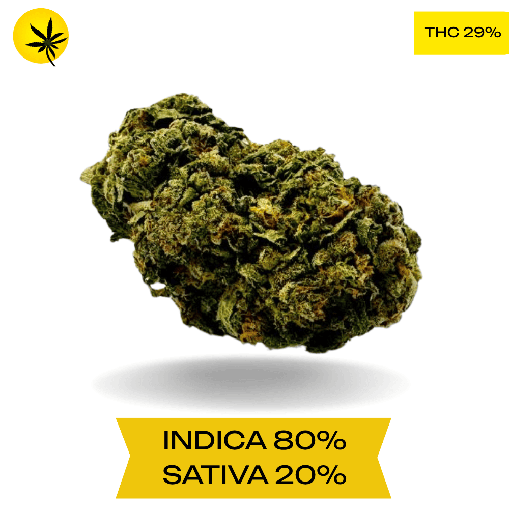 The heritage of this heavy indica is a little uncertain, but it’s known to be a relative and possibly an offspring of the legendary OG Kush, one of history’s most popular strains.