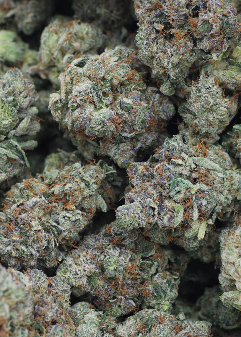 Pink Anxiety is an indica dominant hybrid strain (70% indica/30% sativa) created through crossing the iconic DJ Short Blueberry X Headband strains. Don’t let the name scare you away – Pink Anxiety is anything but anxiety-inducing. This bud packs a soothing and relaxing high that will have you feeling totally out of touch with the world around you and without a care in the world. You’ll feel the heady effects hit you a few minutes after your final exhale, filling your brain with a giggly and lifted sense that has you laughing at anything and everything around you as you fade away into non-existence. You’ll be totally euphoric in this state, free of any negative moods or racing thoughts for hours on end. A deep sense of relaxation accompanies this heady high, helping your body to feel calm without causing too much sedation. Combined with its high 24-25% average THC level, these effects give Pink Anxiety an edge in treating conditions such as chronic pain, headaches or migraines, cramps or muscle spasms, chronic stress or anxiety and depression. This bud has a sweet and fruity cherry vanilla flavor with a creamy sugary candy exhale. The aroma is just as delicious, with a creamy fruity berry overtone accented by hints of fresh vanilla and a touch of earthiness. Pink Anxiety buds have dense grape-shaped nugs with pink-orange hairs, golden undertones and a coating of frosty pink-tinted white crystal trichomes.