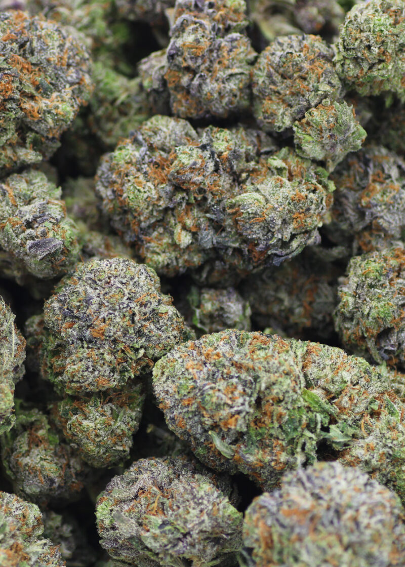 Perfect night cap strain to relax your body and mind. A beautiful trichome covered cross between Comatose OG and Pink Kush with a high average THC level of 24-31%. You can expect a tasty citrus lemon lime flavour with an earthy undertone. The lime, piney, semi-dense and sticky nuggets with pinkish orange hair give you a potent head buzz with an initial rush of euphoria. Releasing any tension to your body, shortly after knocking you onto your couch. Pink Comatose will set you in a calm and cool state of mind.