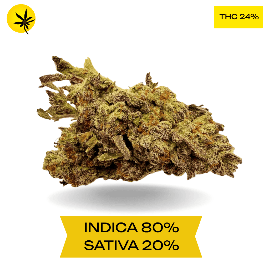 Purple Face is an indica dominant hybrid strain (80% indica/20% sativa) created through crossing the potent Blue FaceX Frozen Black Cherry strains. THC 24%.