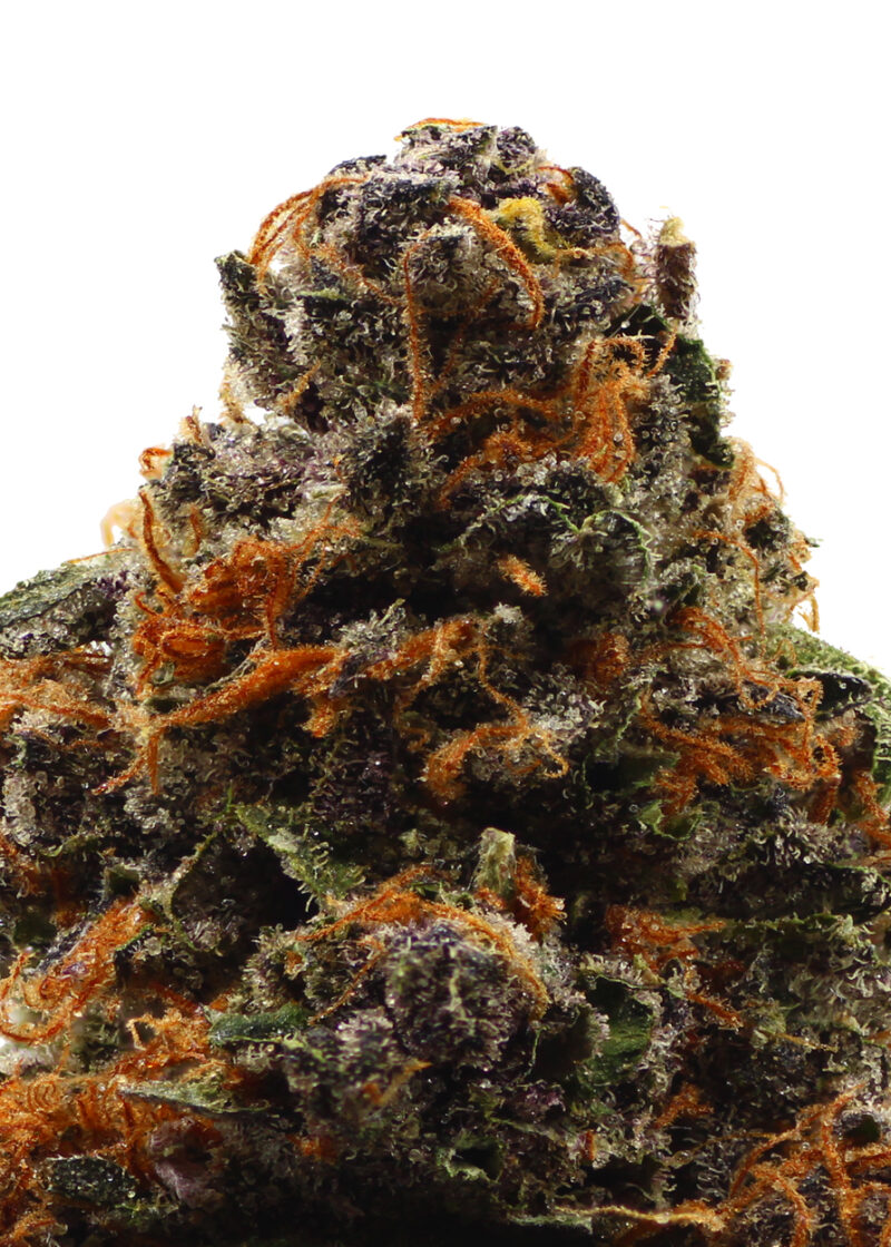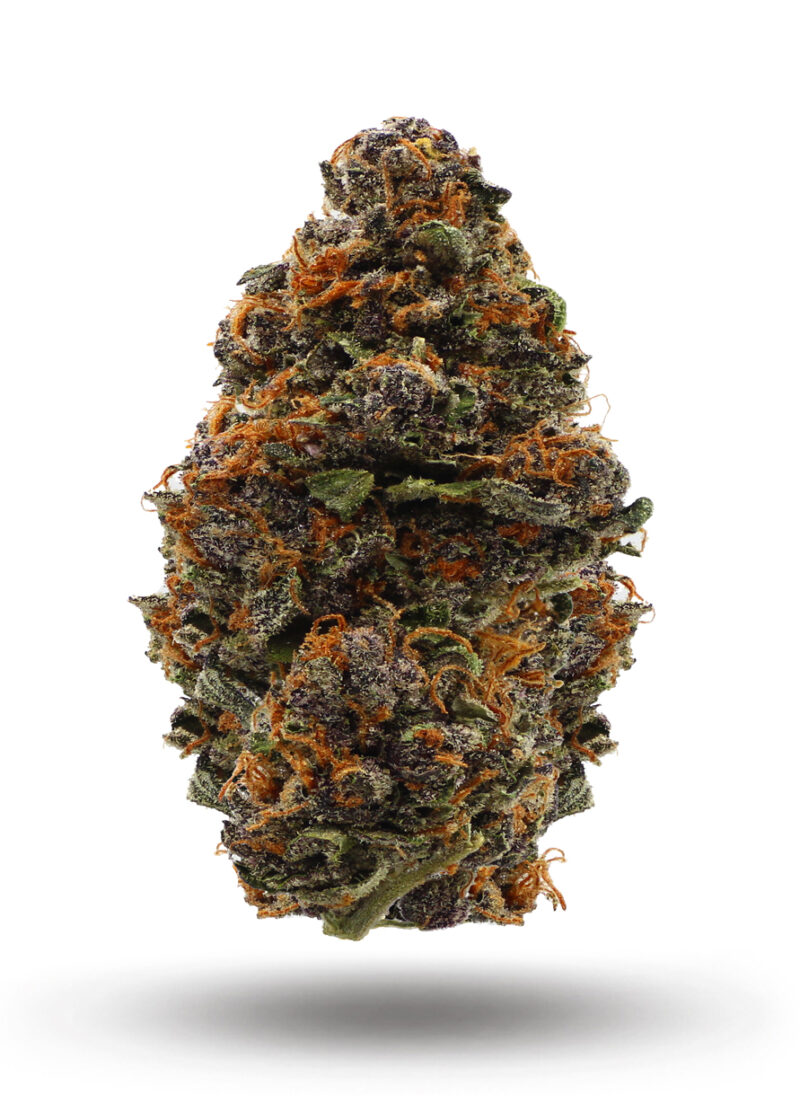 Purple Girl Scout Cookies, also known as “Purple GSC,” is a rare slightly indica dominant hybrid strain (60% indica/40% sativa) created through crossing the classic Purple Kush X Blue Cookies strains. Even though it’s hard to find on your average market, this bud is sought after for its super relaxing high and gorgeous appearance that will leave you staring. Purple Girl Scout Cookies buds have airy grape-shaped olive green nugs with rich purple undertones, thick red orange hairs, and a coating of tiny frosty white crystal trichomes. As you break apart each super sticky little nugget, fresh aromas of spicy dank berries and earthy pepper are released. The flavor follows the same profile, with a spicy berry overtone that’s accented by dank earth and herbs upon exhale. The Purple Girl Scout Cookies is one best suited for a lazy day at home, with super relaxing effects that will have you kicking back in no time at all. You’ll feel a light cerebral lift at the onset of the high that gives you a boost of euphoria, immediately erasing any negative or racing thoughts. As your mind lifts, you’ll feel a calming state wash over your body, leaving you feeling totally at ease. With these effects and its high 25-29% average THC level, Purple Girl Scout Cookies is said to be perfect for treating chronic pain, appetite loss or nausea, depression, and chronic stress.
