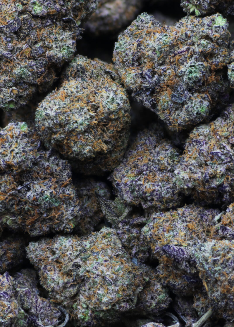 Purple Jolly Rancher is an indica dominant hybrid strain (75% indica/25% sativa) created through an unknown combination of other indica heavy hybrid strains. Although its exact parentage is a hot debate among breeders and patients alike, Purple Jolly Rancher is often sought out for its truly delicious flavor and super euphoric high. Like its namesake candy, Purple Jolly Rancher has a sweet and sugary fruity candy flavor with a lightly sour exhale. The aroma is just as intoxicating, with a fruity berry candy overtone accented by hints of sour fruits and spicy earthiness. The Purple Jolly Rancher high will settle in mere moments after your final exhale, filling your brain with a lifted sense of happiness that has you flying high. At the same time, a physical tingle will begin to work its way into your limbs and spine, encouraging you to settle down and relax without a pain in the world. This combination can turn sedative, so mind your dosage if you have things to do! With these effects and its high 20-33% average THC level, Purple Ghost is often said to be perfect for treating chronic pain, insomnia, depression, chronic stress and muscle spasms or cramps. This bud has small and dense emerald green nugs with light purple undertones, beautiful amber hairs and a coating of lavender-tinted white crystal trichomes.