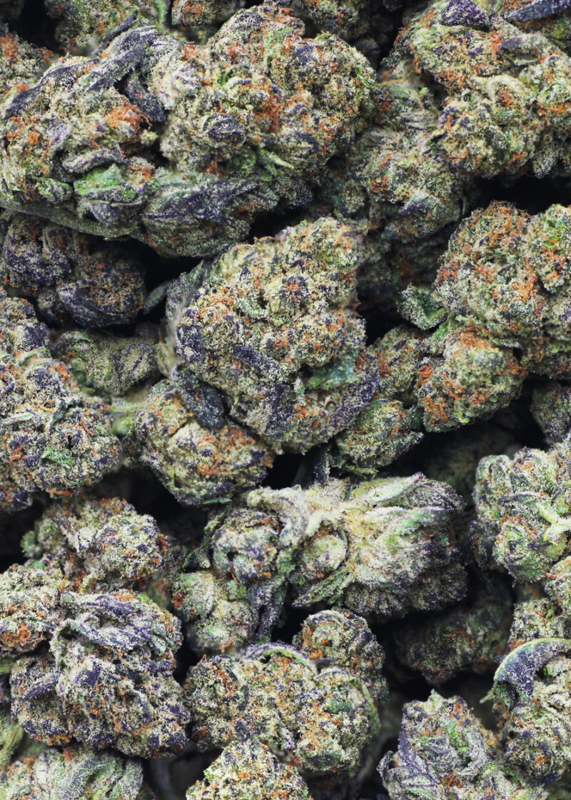 Purple Punch F2 is a heavily indica dominant hybrid strain (90% indica/10% sativa) created through crossing the powerful Purple Punch X Purple Punch strains. The perfect hard-hitting indica that will have you flying for hours on end, Purple Punch F2 packs a soothing high that’s perfect for helping you get to sleep after a long and stressful day. You’ll feel the effects sneak in a few minutes after your final exhale, creeping into both mind and body before suddenly taking hold. You’ll feel mentally lifted and infused with a sense of euphoria that has you feeling happy and creative, without a care in the world. At the same time, a relaxing body high will settle into your limbs, lulling you into a lightly couch-locked state of pure physical sedation. Combined with its super high 23-27% average THC level and 1-2% average CBD level, these sleepy effects make Purple Punch F2 a great choice for treating conditions such as chronic pain, insomnia, depression, appetite loss or nausea and chronic stress. This bud has a sweet and fruity blueberry berry candy flavor with a hint of fresh flowery vanilla upon exhale. The aroma is very similar, with a flowery vanilla overtone accented by sweet fruity berries and spicy earthiness. Purple Punch F2 buds have oversized and airy bright neon green spade-shaped nugs with thin red-orange hairs and tiny amber crystal trichomes.
