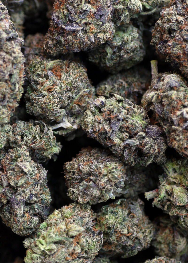 Stinky Pinky is an indica dominant hybrid strain (80% indica/20% sativa) created as a phenotype of the classic Pink Kush strain. Named for its heavy stench and gorgeous appearance, Stinky Pinky is the perfect choice for any discerning indica lover. Like its name suggests, Stinky Pinky has a super heavy and pungent aroma with a touch of sour citrus and spicy black pepper. The aroma is just as potent, with a flavorful sour citrus taste accented by spicy black pepper, sharp chemicals and earthy herbs. The Stinky Pinky high hits you a few minutes after your final exhale, filling your brain with a lifted sense of happiness and ease. You’ll feel a sense of mental calm wash over you, gently scrubbing away any negative or racing thoughts, replacing them with a touch of creativity and happy nothingness. At the same time, a soothing body high will creep over your physical form, locking you to the couch and leaving you fully sedated from head to toe. Combined with its high 20-27% average THC level, these effects make Stinky Pinky a great choice for treating conditions such as chronic stress or anxiety, PTSD, insomnia, depression and mood swings. This bud has long and dense grape-shaped emerald green nugs with red-orange hairs, dark purple leaves and a coating of tiny, clear crystal trichomes.