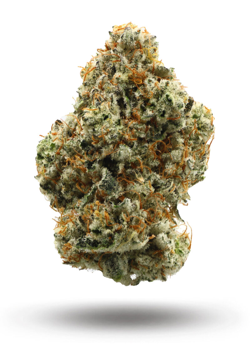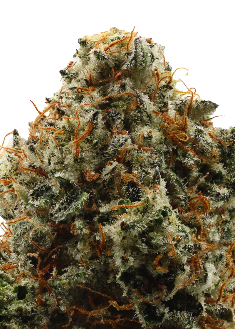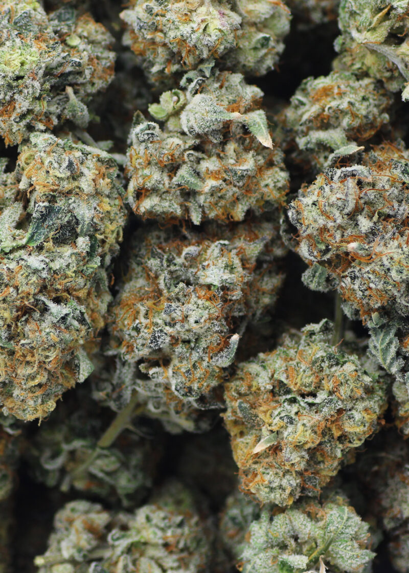 Wedding Mints #11 is an evenly balanced hybrid strain (50% indica/50% sativa) created through crossing the delicious Wedding Cake X Thin Mint Girl Scout Cookies strains. Best known for its super delicious flavor, Wedding Mints #11 packs a soothing, well-balanced high and a great taste into each and every toke. Like its name suggests, Wedding Mints #11 has a super sweet and fruity lemon lime flavor with a sharp punch of mint to it, too. The aroma is just as delightful, with a sweet fruity lemon-lime overtone accented by tropical pineapples and a heavy mintiness. The Wedding Mints #11 high will settle in a few minutes after your final toke, filling your mind with a sense of tingly happiness. You’ll feel mentally stimulated and day-dreamy, leaving you fading in and out of focus. A light state of arousal rounds out the high, leaving you feeling ready to go. Combined with its high 23-24% average THC level and 0-1% CBD level, these effects make Wedding Mints #11 a great choice for treating chronic stress or anxiety, depression or mood swings and migraines or headaches. This bud has dense grape-shaped minty green nuts with golden undertones, thin orange hairs and tiny golden-white crystal trichomes.